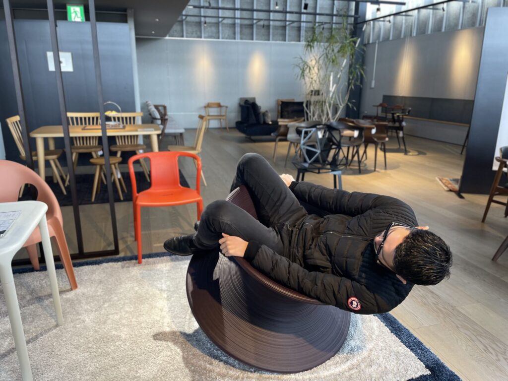 座った状態で弧を描くように360度ぐるぐる回転することができます。