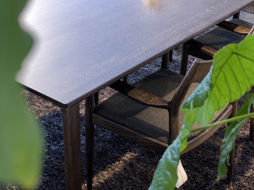 デザイン性、燻したような国産ナラ材の独特な色味、そして木目。