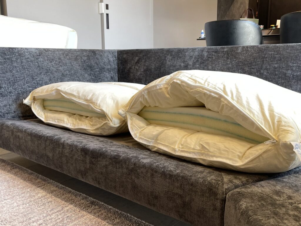 たまにクッションの形状も手で整えられていているそうです。