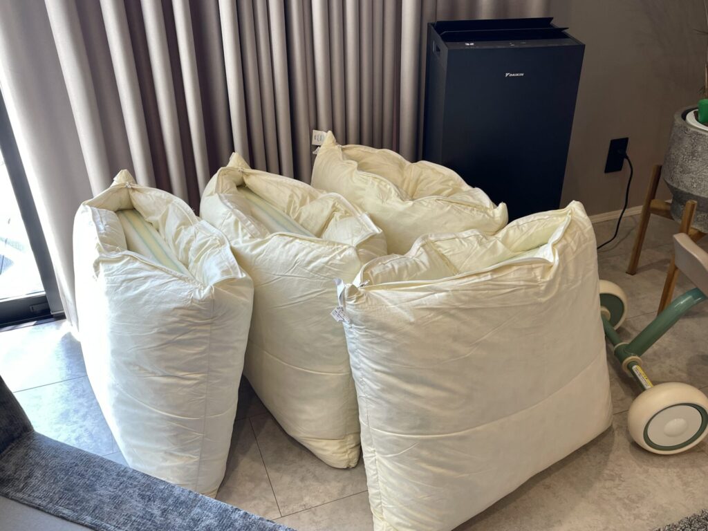クッションカバーを外しフェザーバックを取り出します。