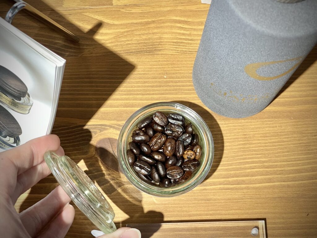 一度コーヒー豆の香りを嗅いでください