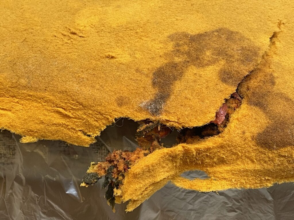 ウレタンはぺったんこに潰れ、劣化が進んでいました。
