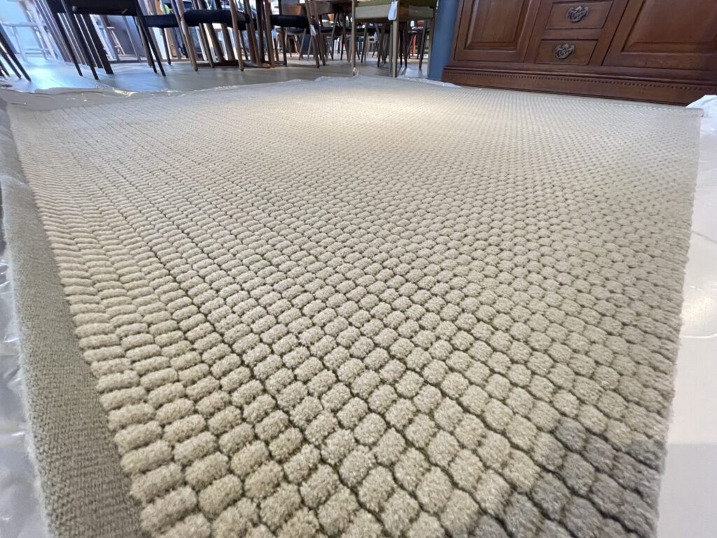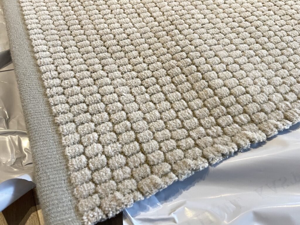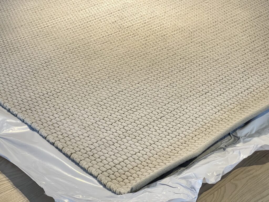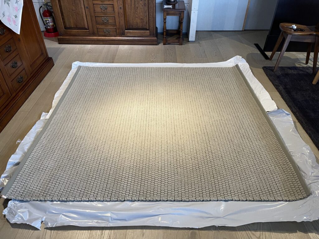 ウォールナット材のダイニングテーブルの下に敷かれる予定です。