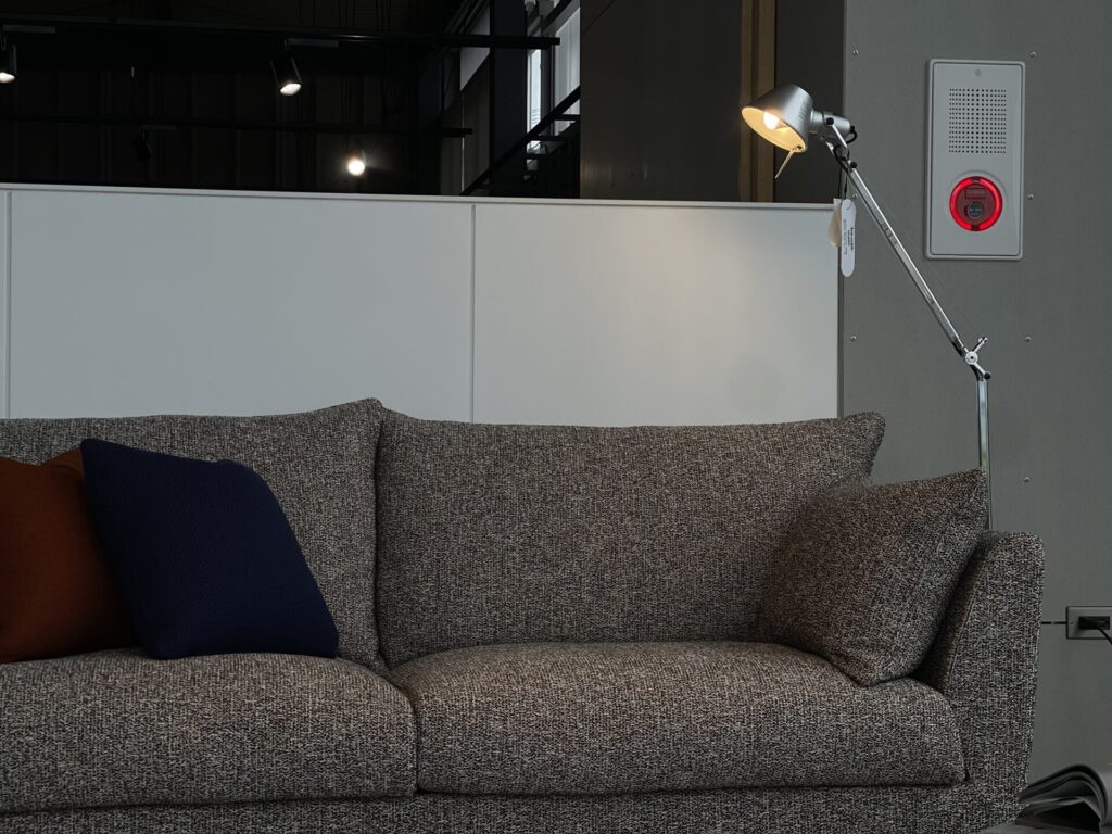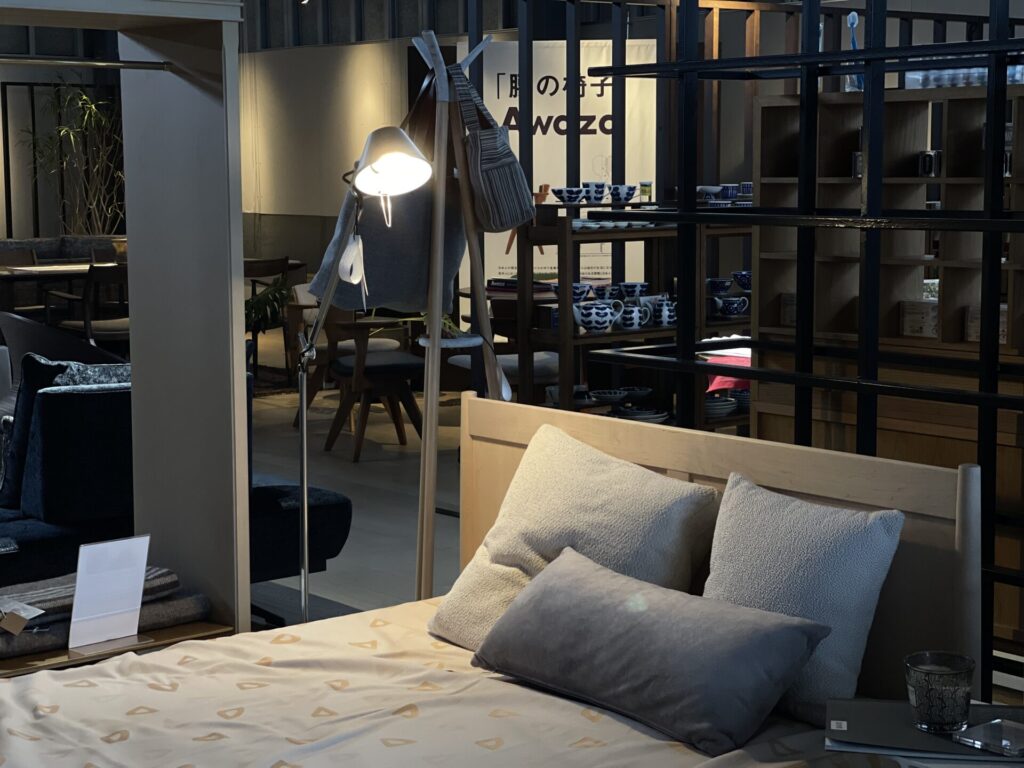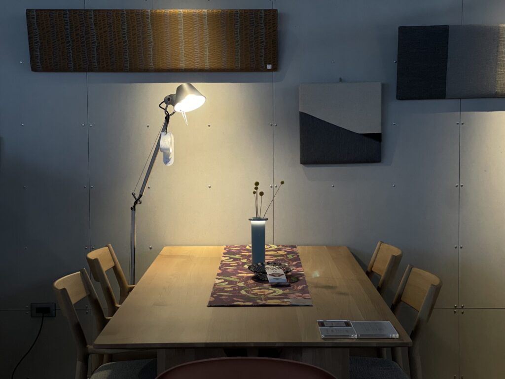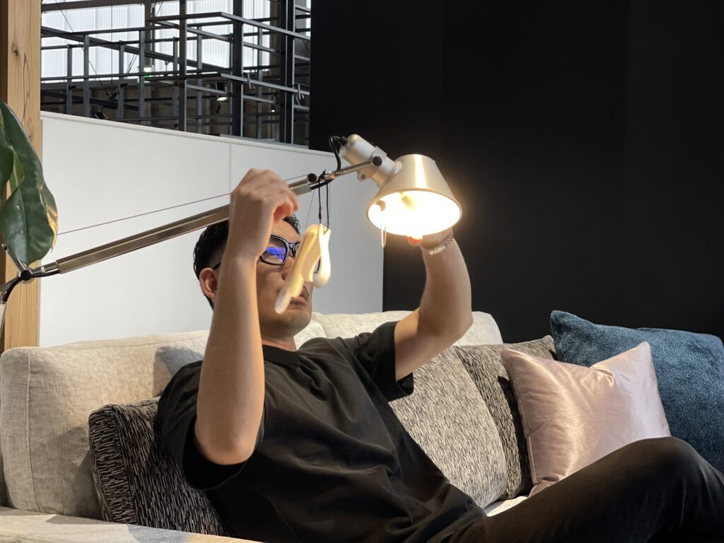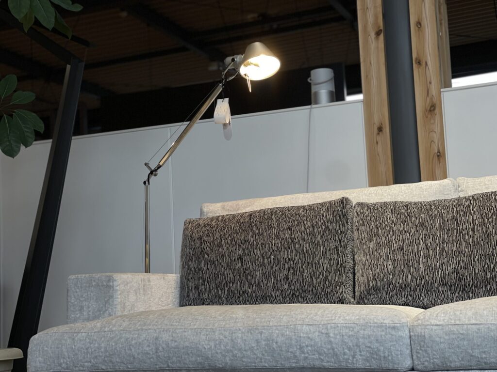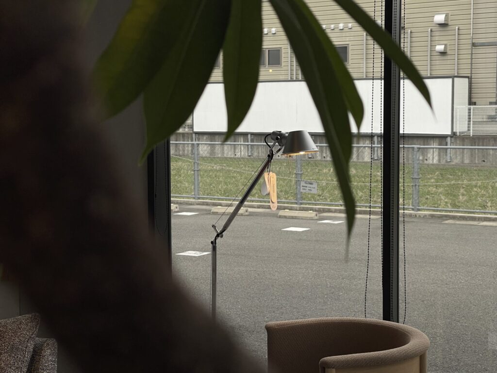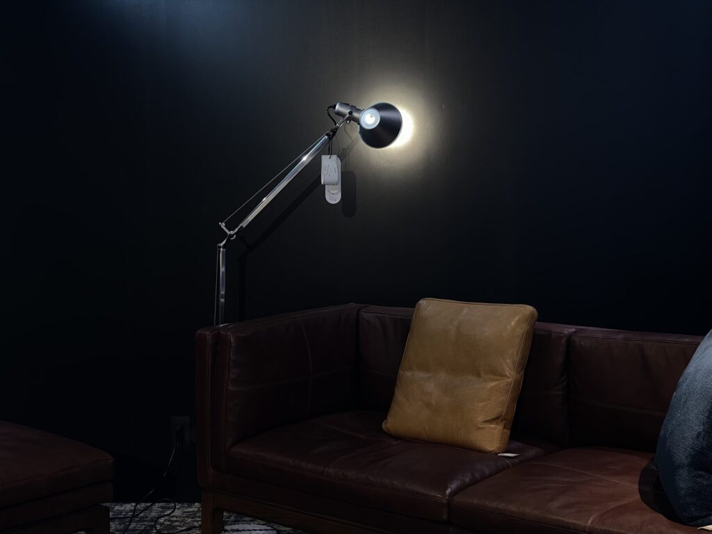 ソファサイドに置いたリーディングフロアの明かりのみを使用し