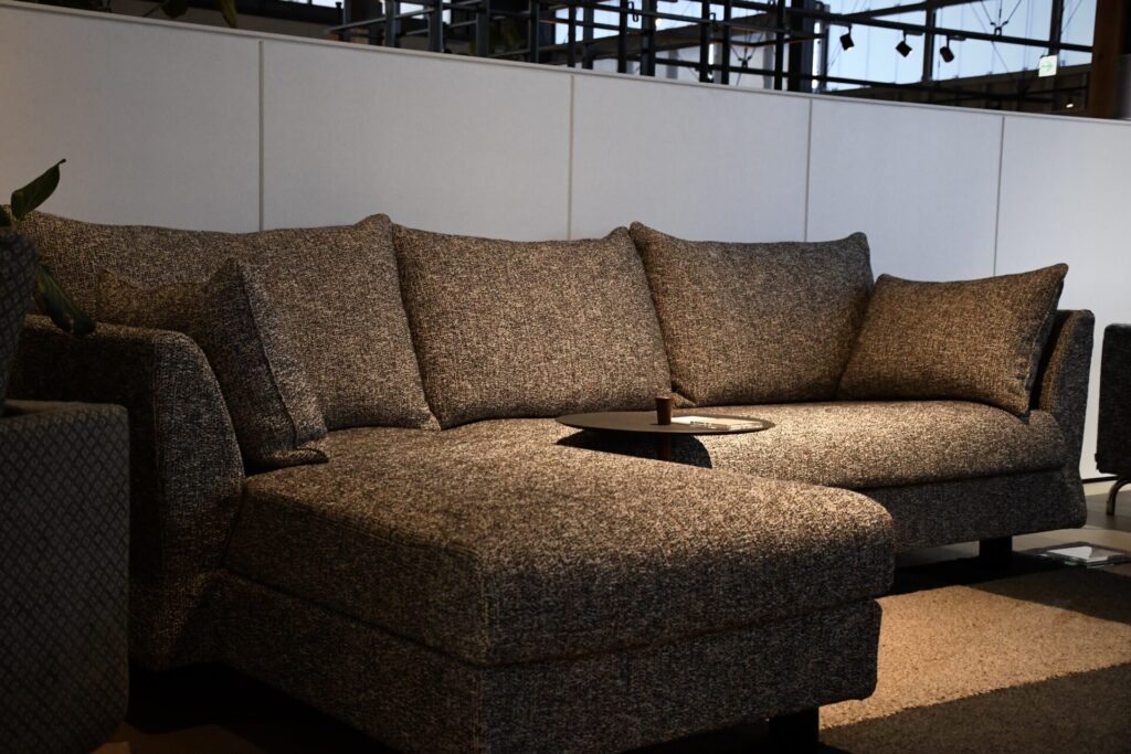 見る角度で浮遊感のあるデザインのソファ<X>