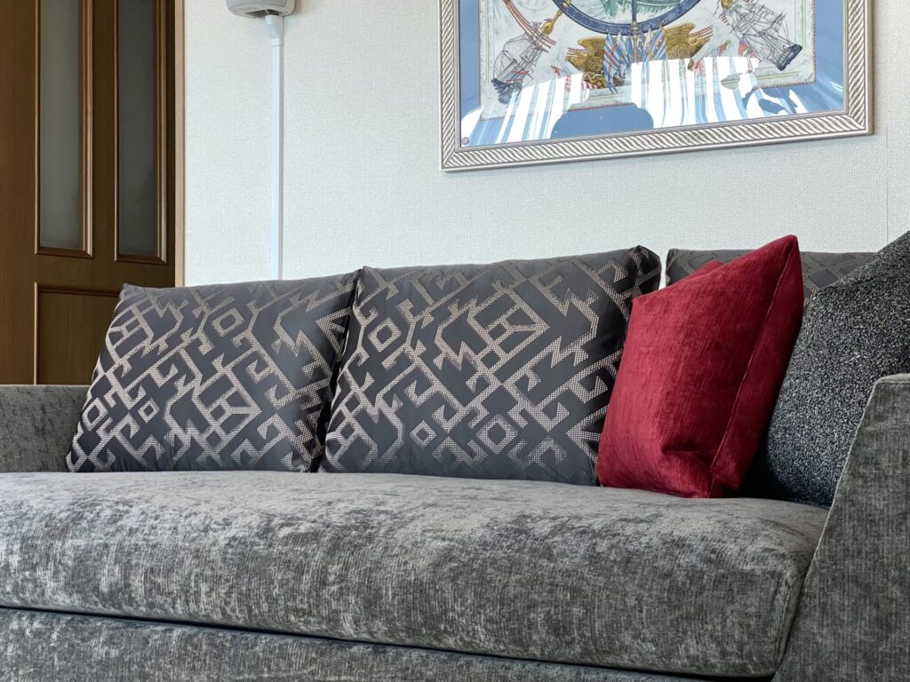 フェザー入りのソファではやや硬めの分類に入ります。