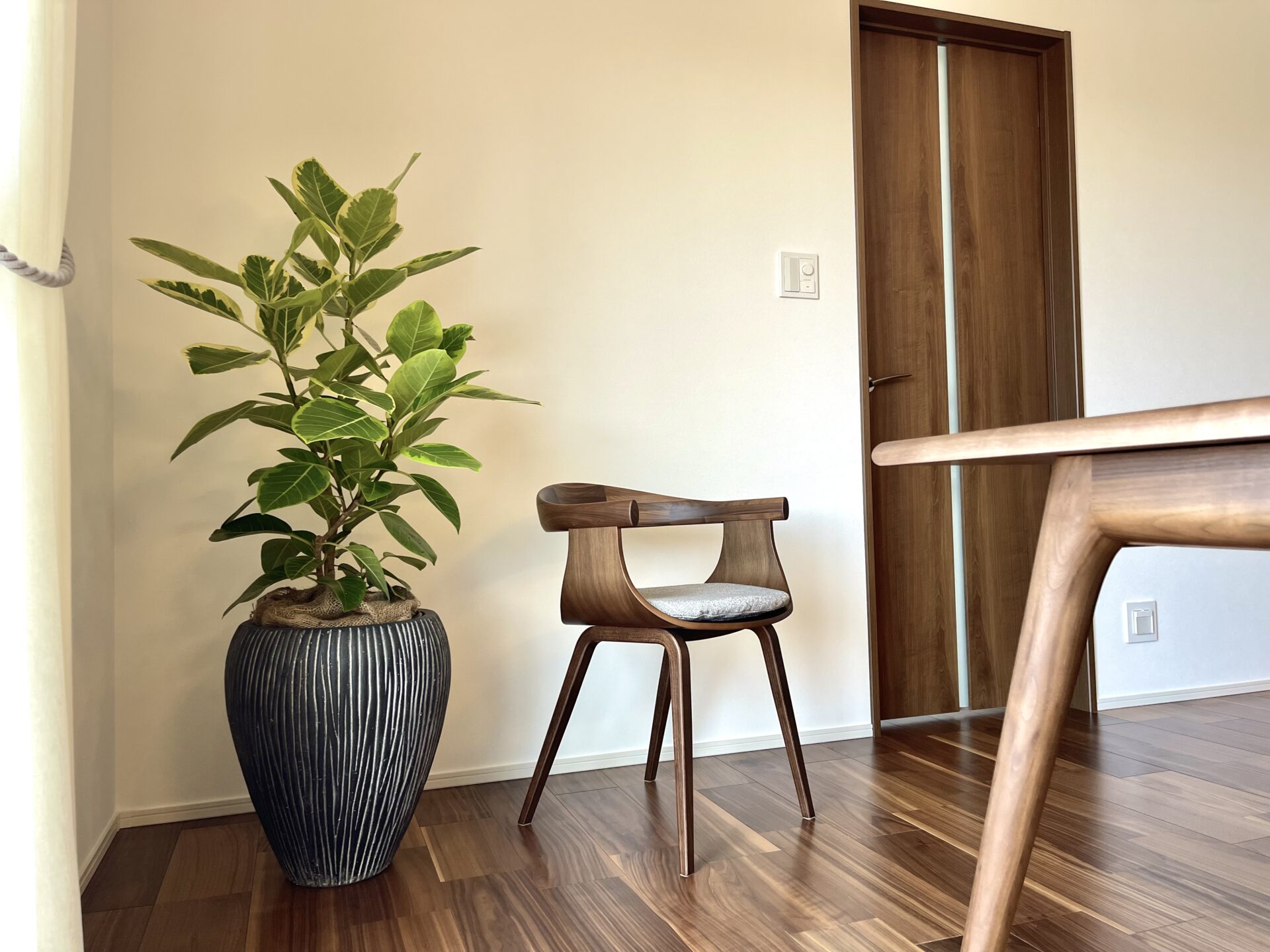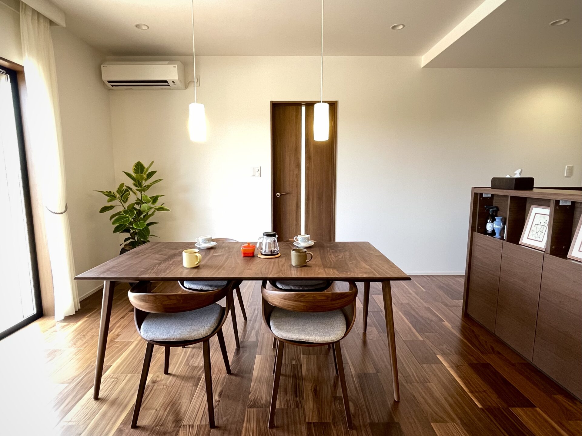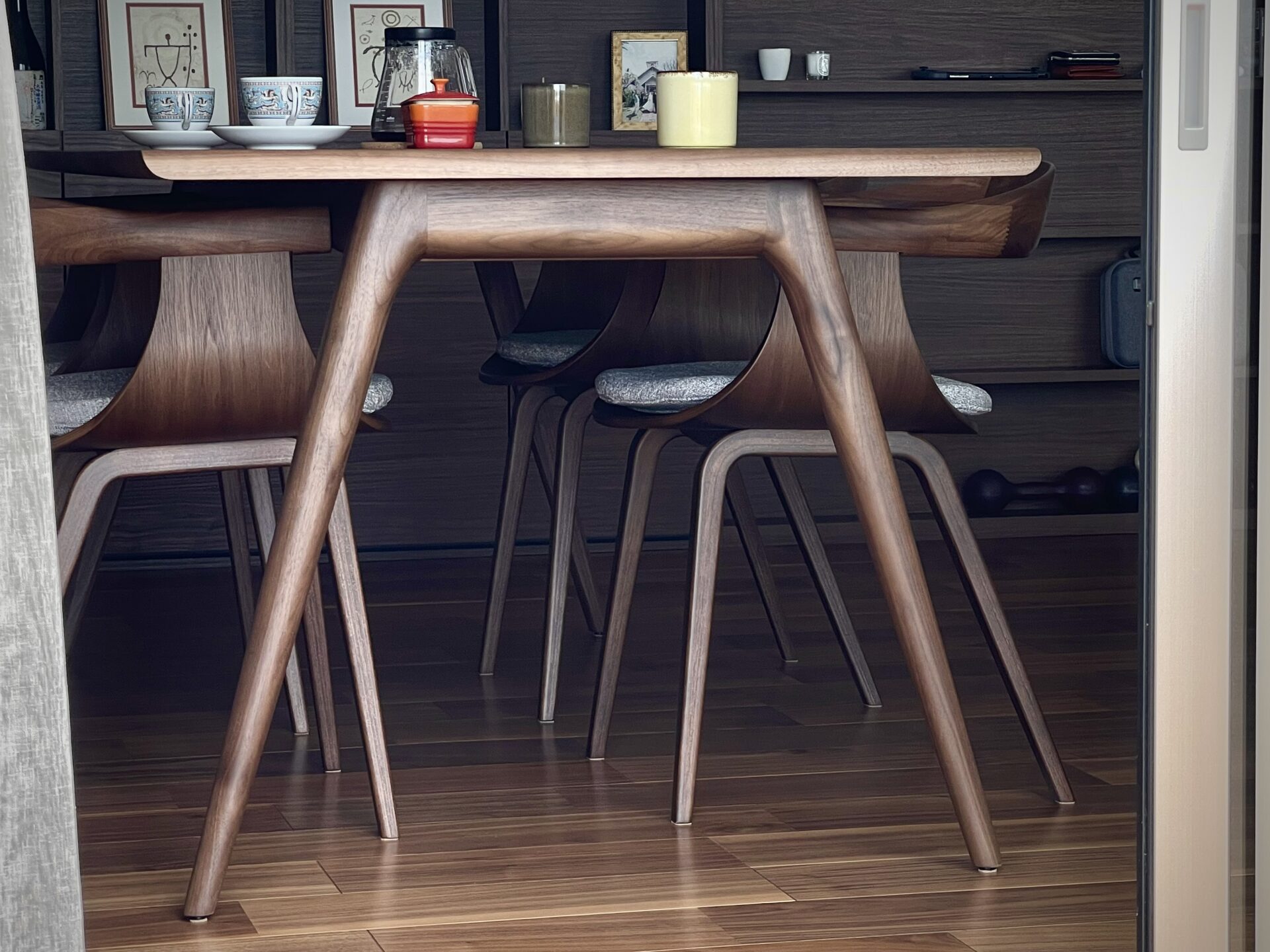 ダイニングチェアのシャープさとメリハリがついているように感じこだわりを感じます。