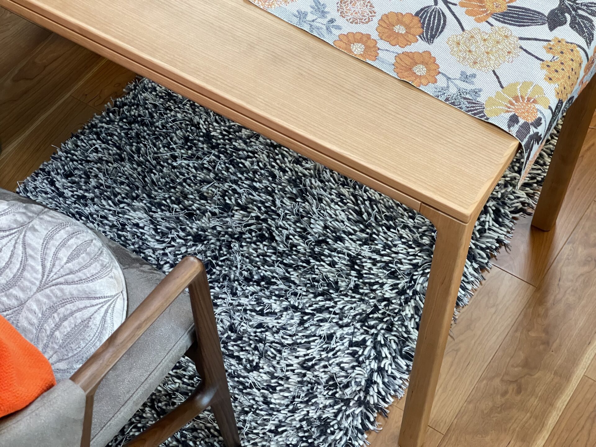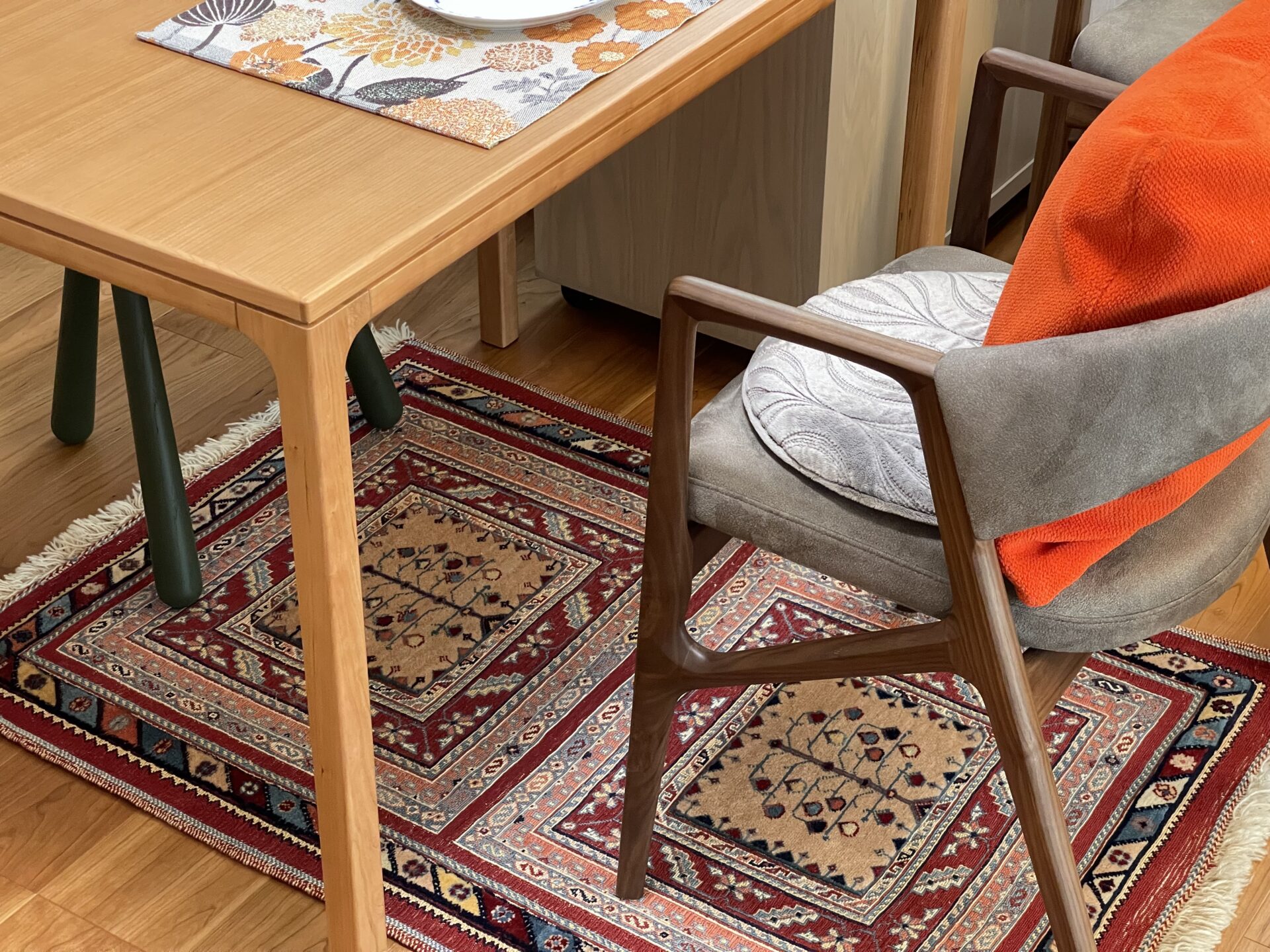 足元のラグやテーブルラグを季節ごとに替えることでインテリアを楽しまれていらっしゃいます。