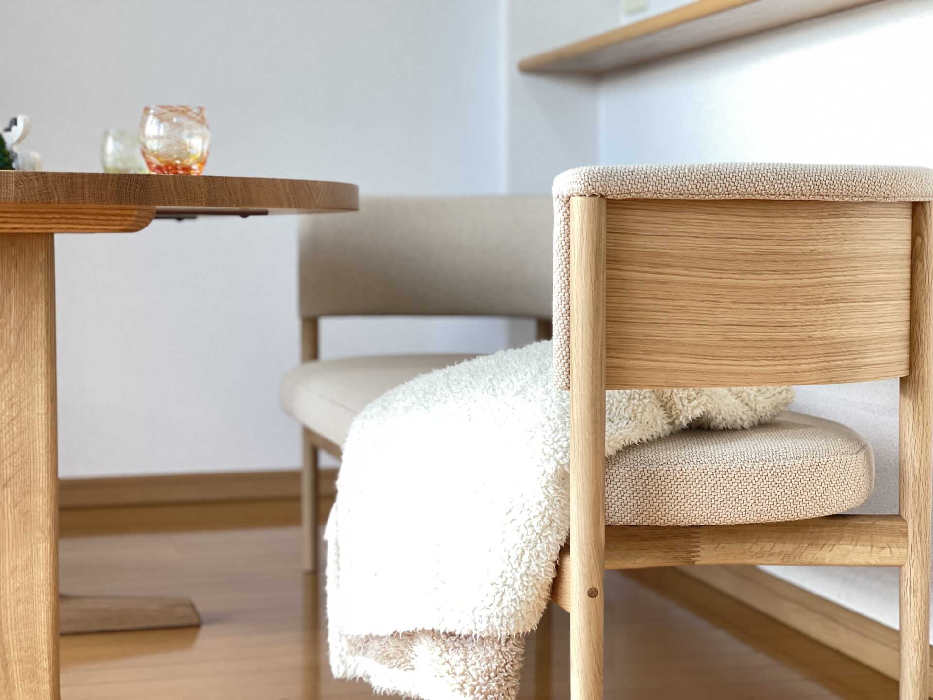 背面デザインが板、かつ丸みを帯びたダイニングソファをお探しだったK様、
