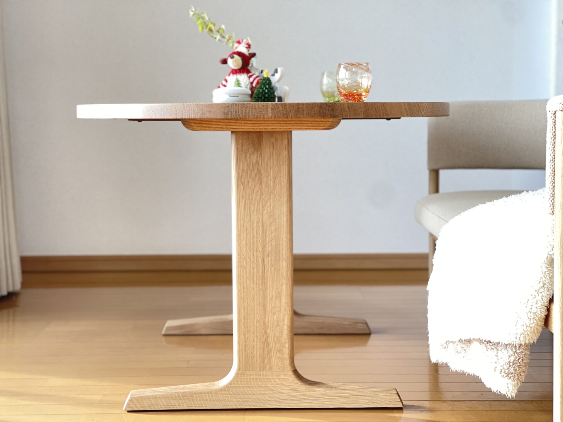 変形型天板のデザインは異なる大きさの円を繋げた豆型