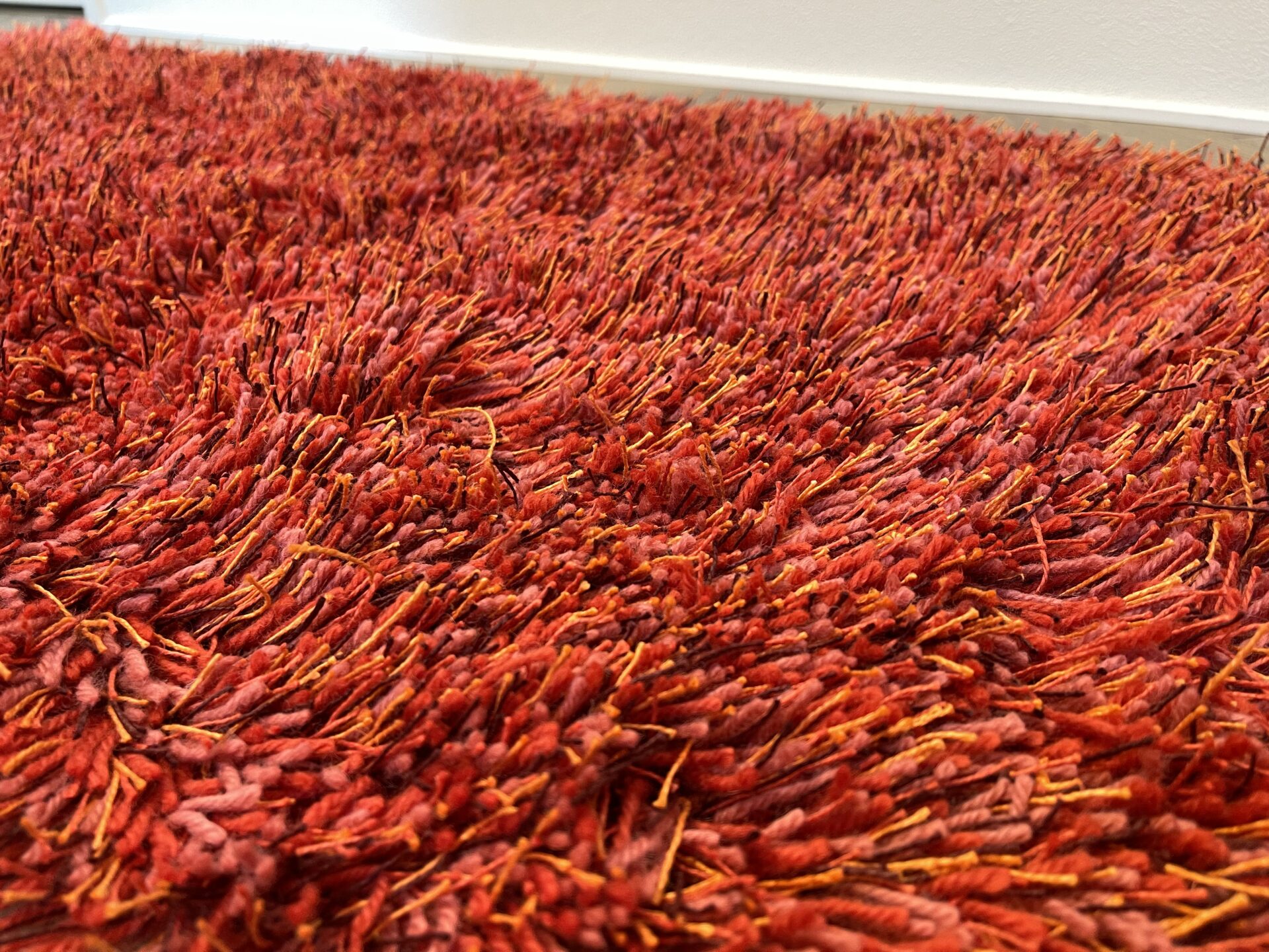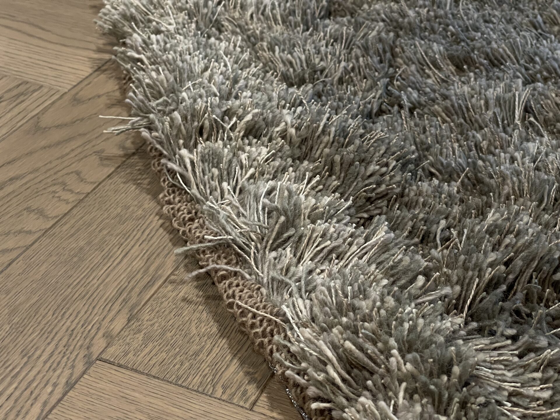 真上から見ると楕円形の形が目に入る非常にボリューミーなシャギーラグです。