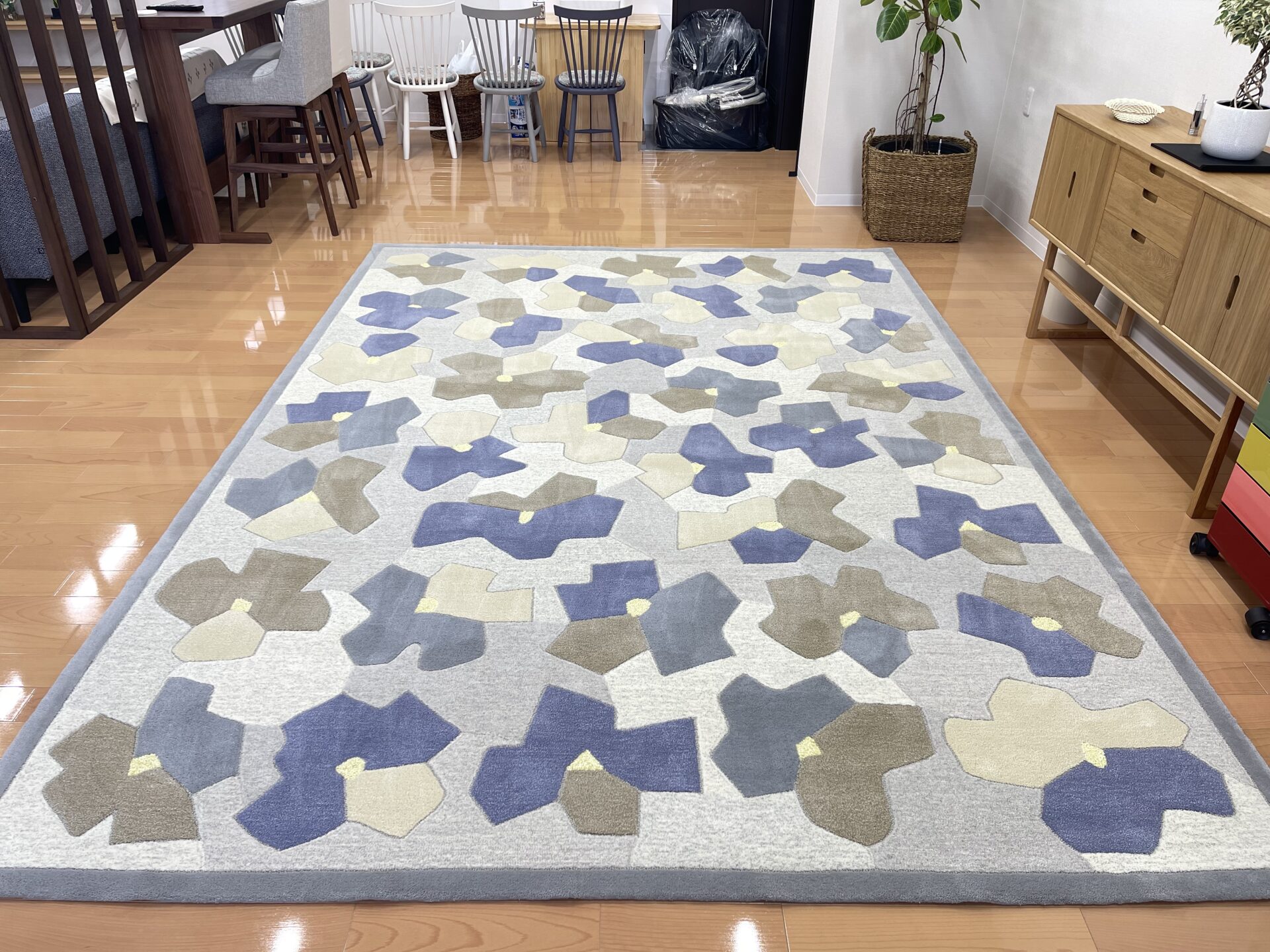 床面積に合わせもうワンサイズ大きいモデルをご提案させて頂き、この度2025年新作のラグをお選びいただきました。
