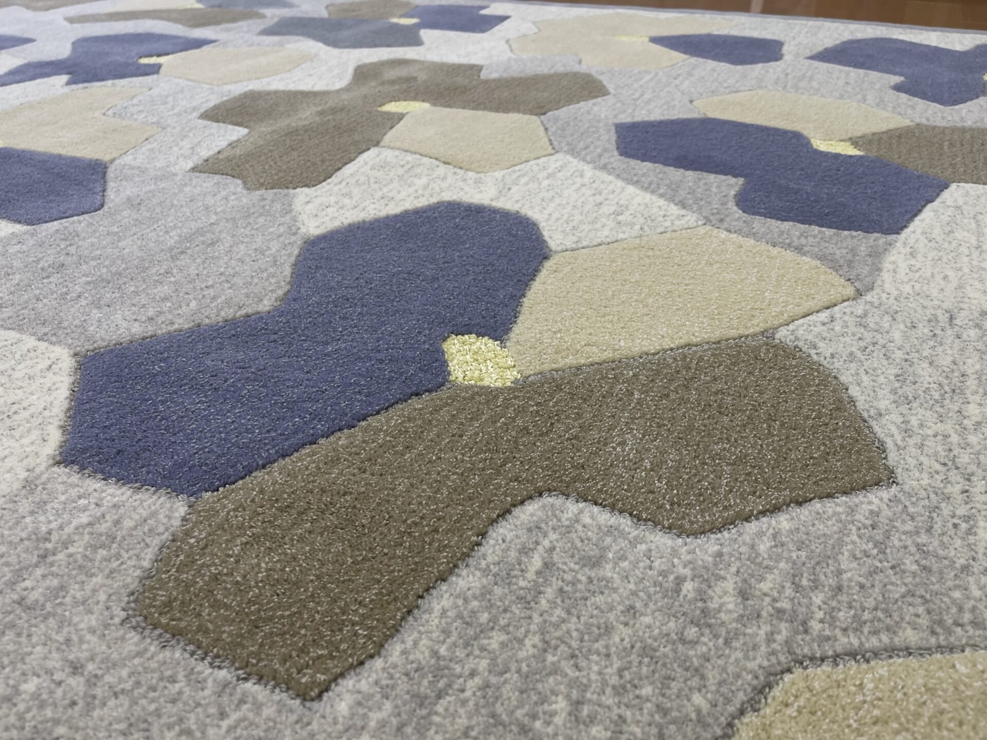 テーブル下へ敷くことで空間を仕切る間仕切りのような効果が働き、商談スペースに纏りを生むことができるラグ。