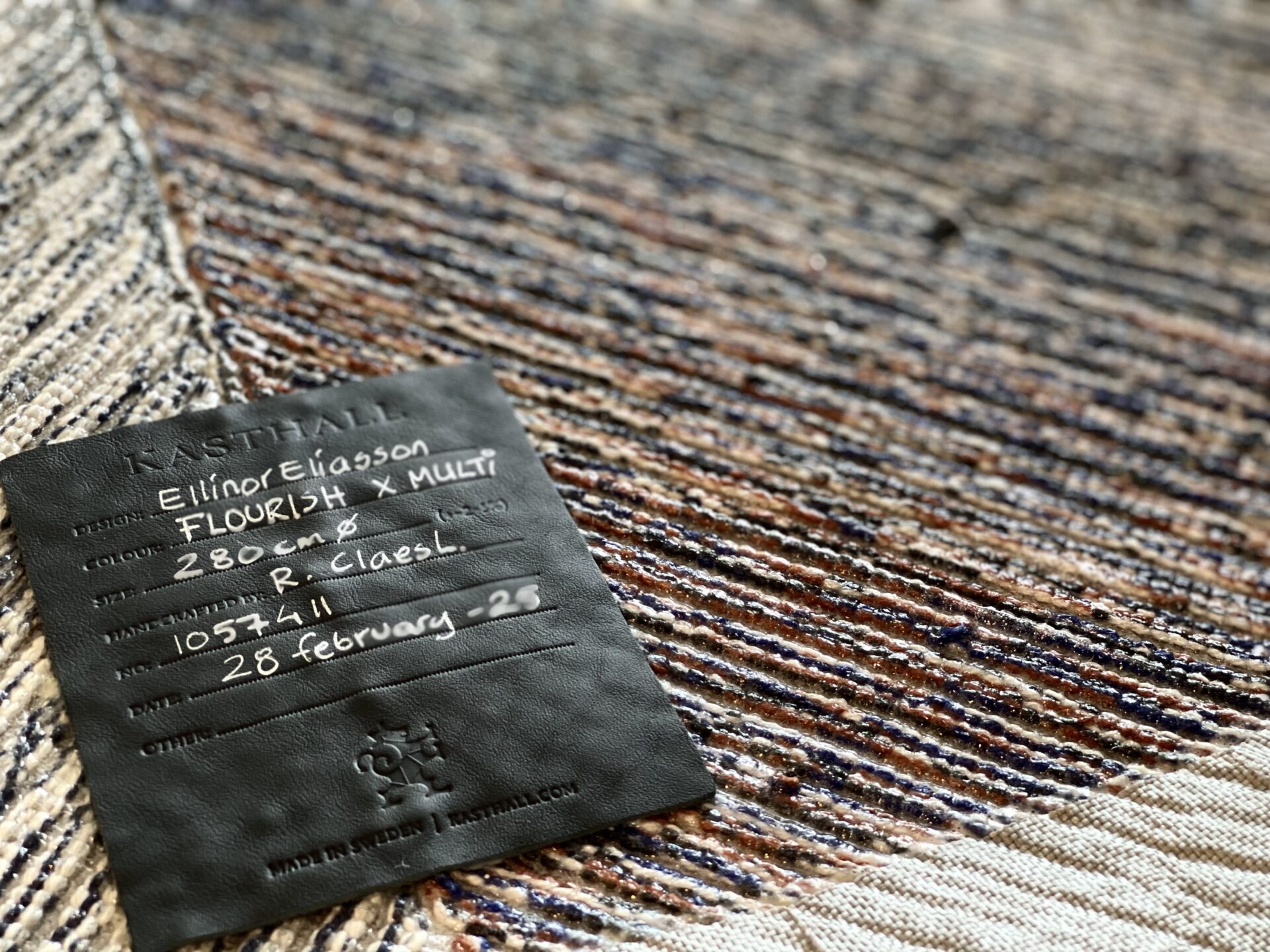 KASTHALLラグには担当者や完成の日にちが手書きによって裏面のレザーパッチに刻まれます。