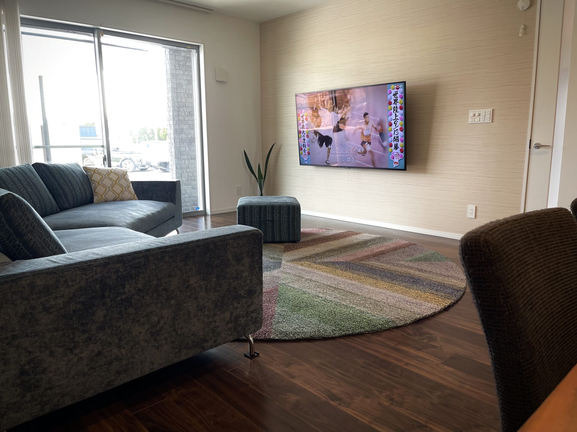 ソファ座って目の前に明るいグラデーションが来るようN様のこだわりにお応えしセッティングいたしました。