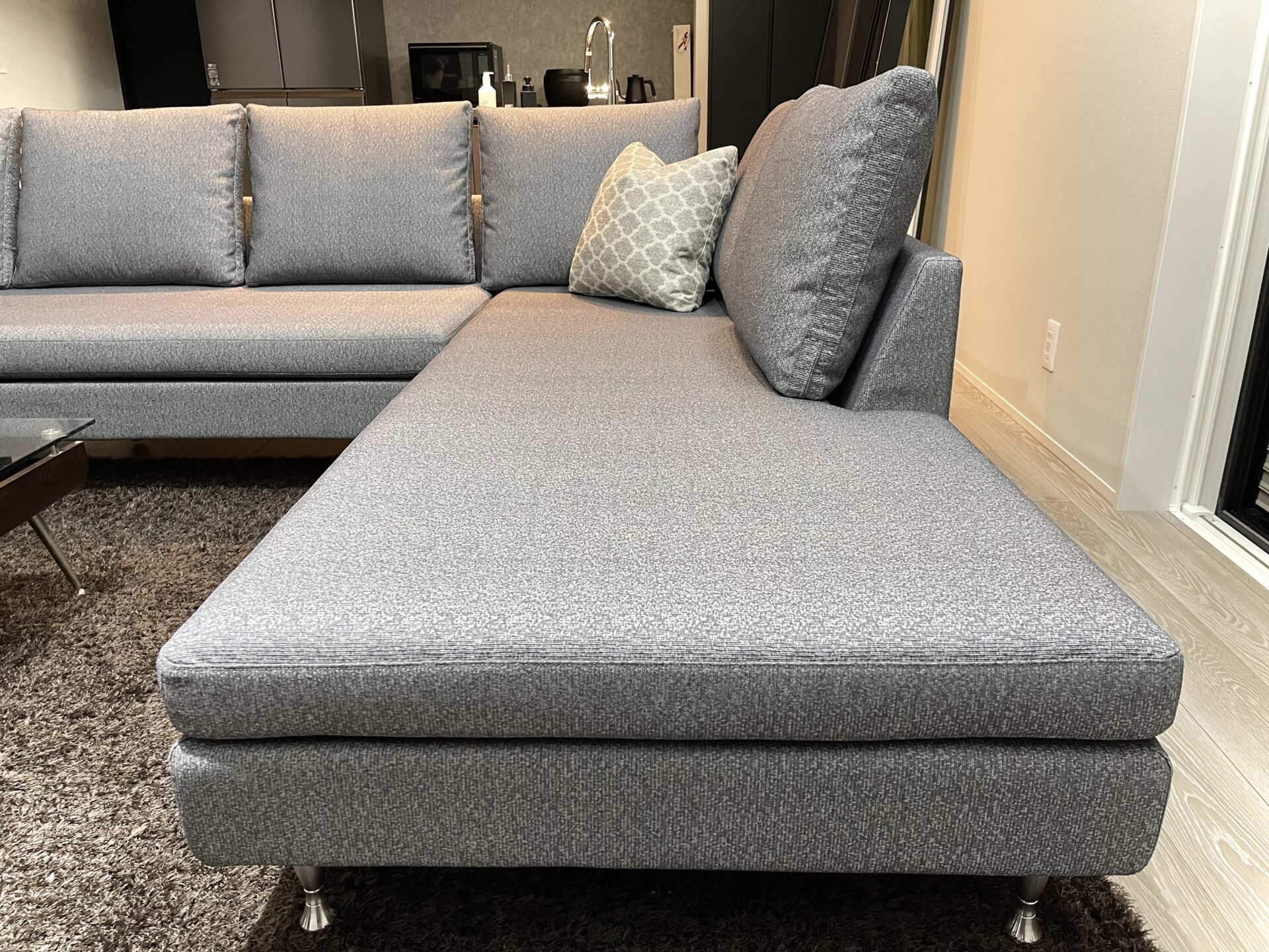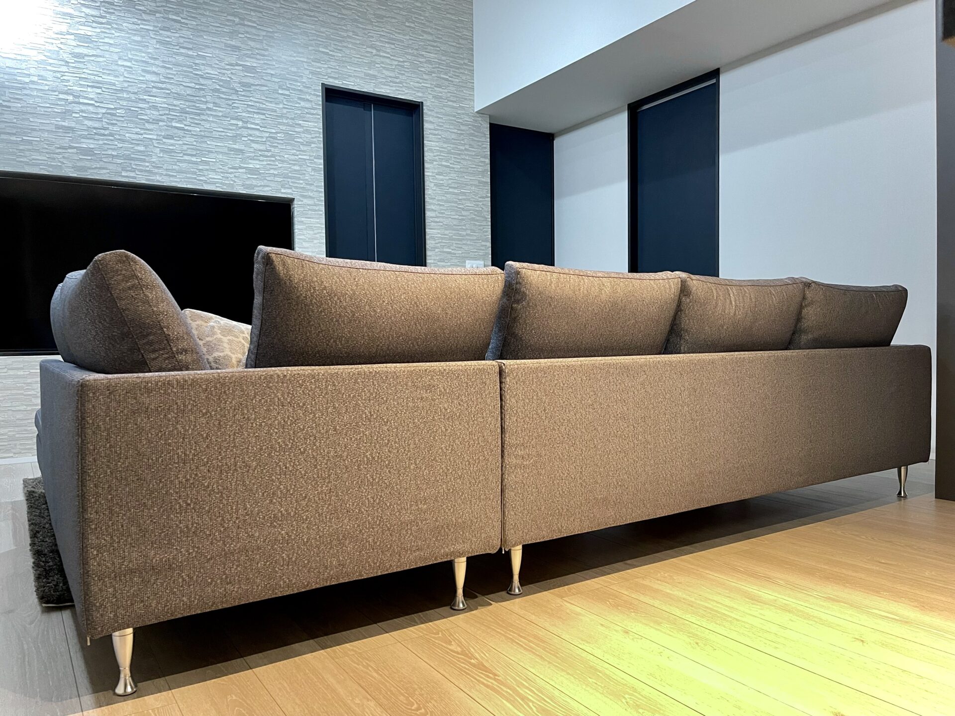 よりきちんと寛げる「W299×D220センチの3Pカウチソファ」をご提案させていただきました。