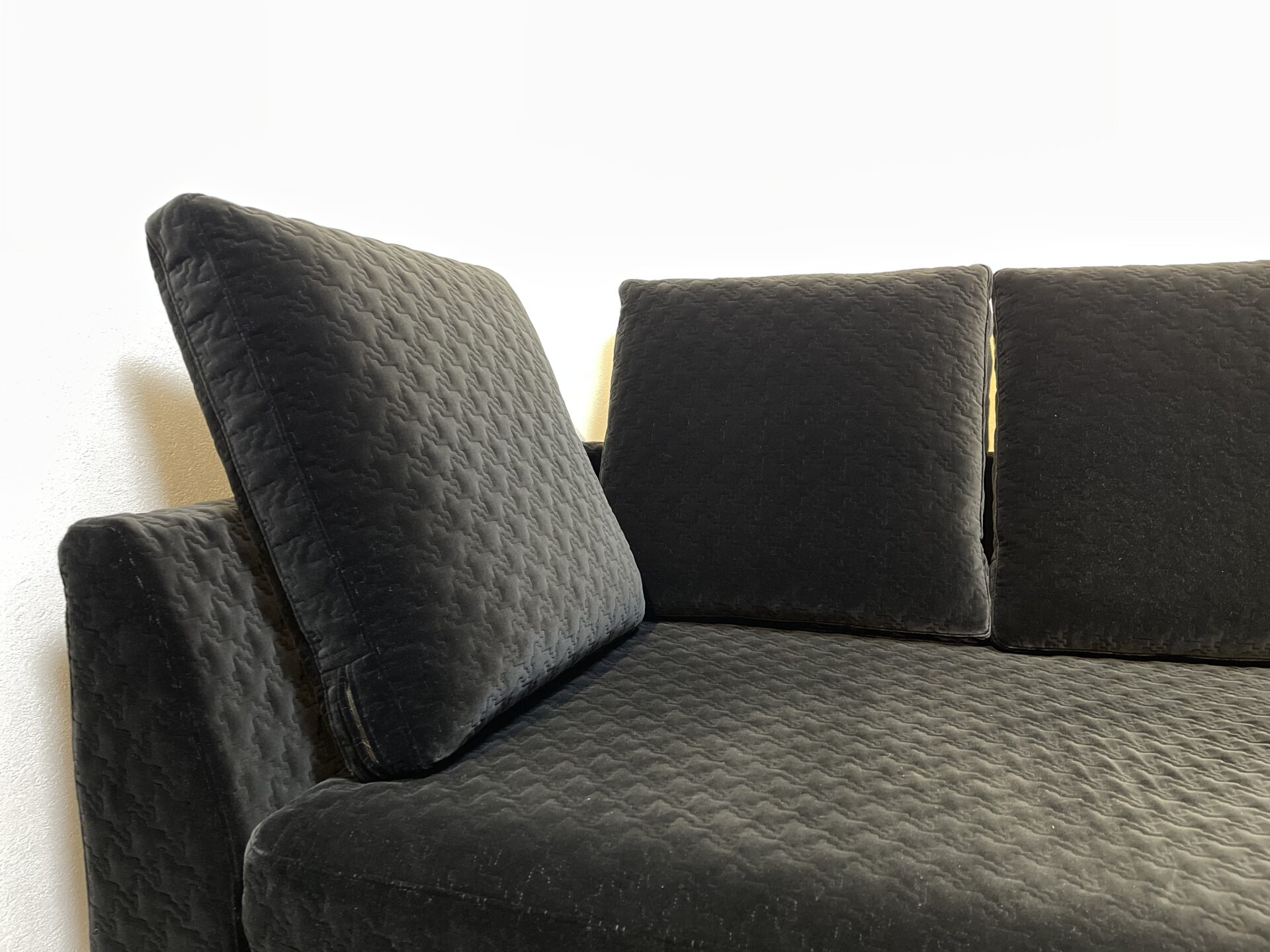 マットブラックのソファに仕上がり、光の当たる角度より凹凸のあるテクスチャーが浮かび上がりより立体感のあるソファに仕上がります。