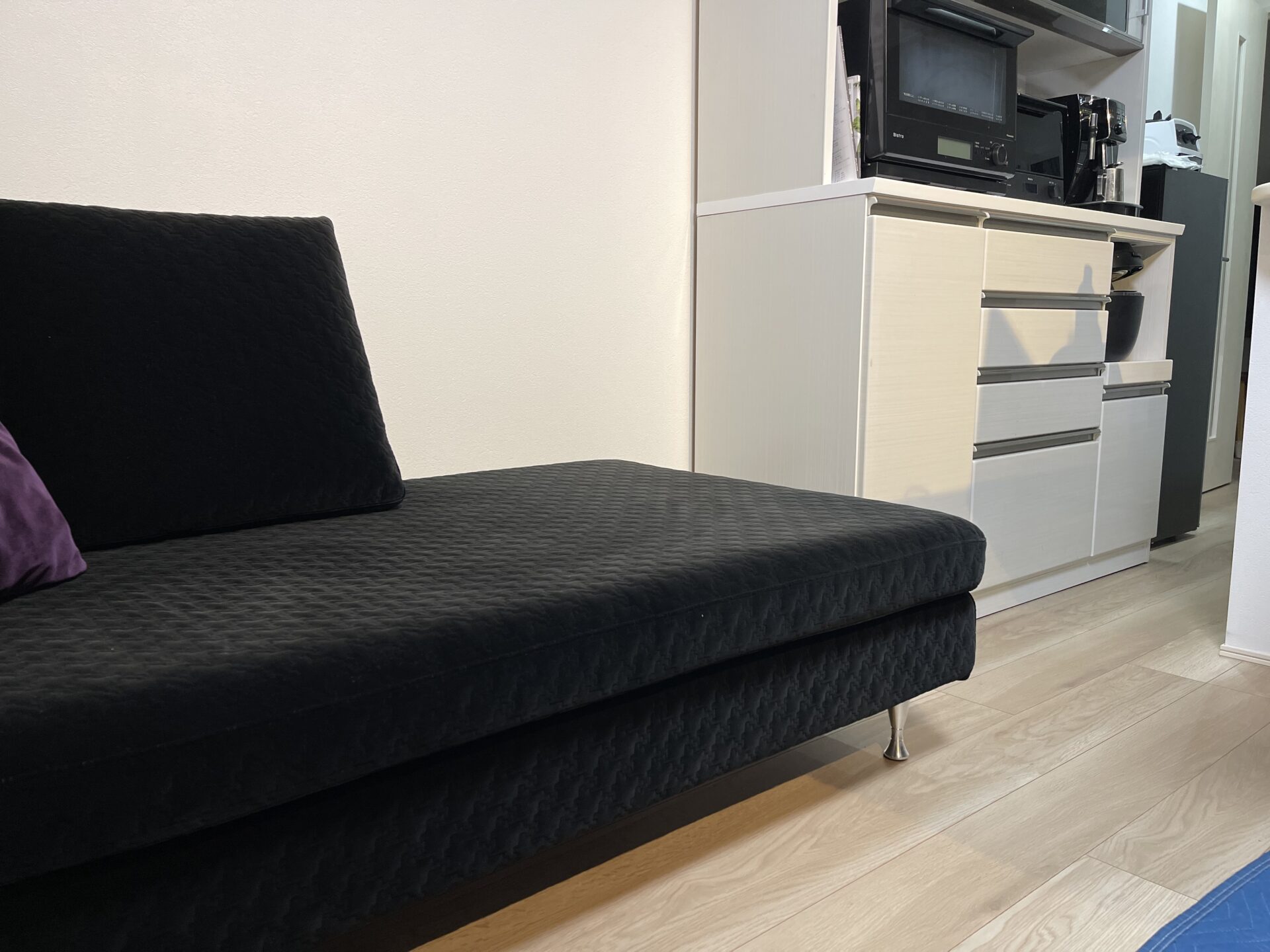 高身長のU様はソファで横になることもあるそうで、3Pカウチ(幅220センチ)も候補に上がりましたが、